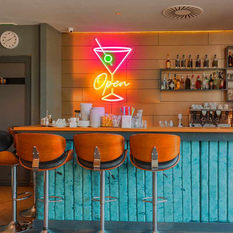 - Retro Neon Signs: Perfect for those looking to bring a touch of the past into their bar space. These designs often feature classic bar symbols like martini glasses, beer mugs, and iconic sayings like "Cheers" or "Happy Hour."