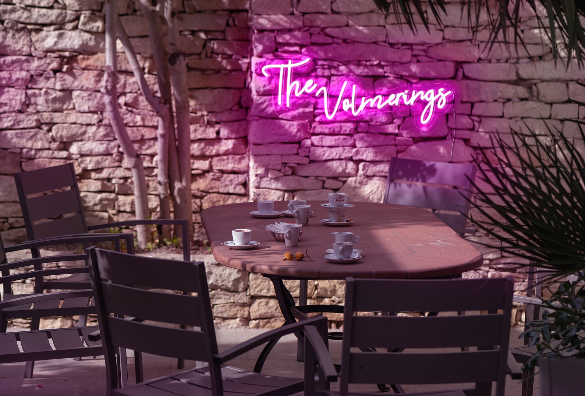 Elevate your space with The Volmerings, a unique and beautiful handmade LED neon sign. With a variety of vibrant color options to choose from, it will add a pop of personality to any room. Crafted with high quality and safe materials, this sign is not only durable but also energy efficient, making it the perfect gift idea for anyone.
