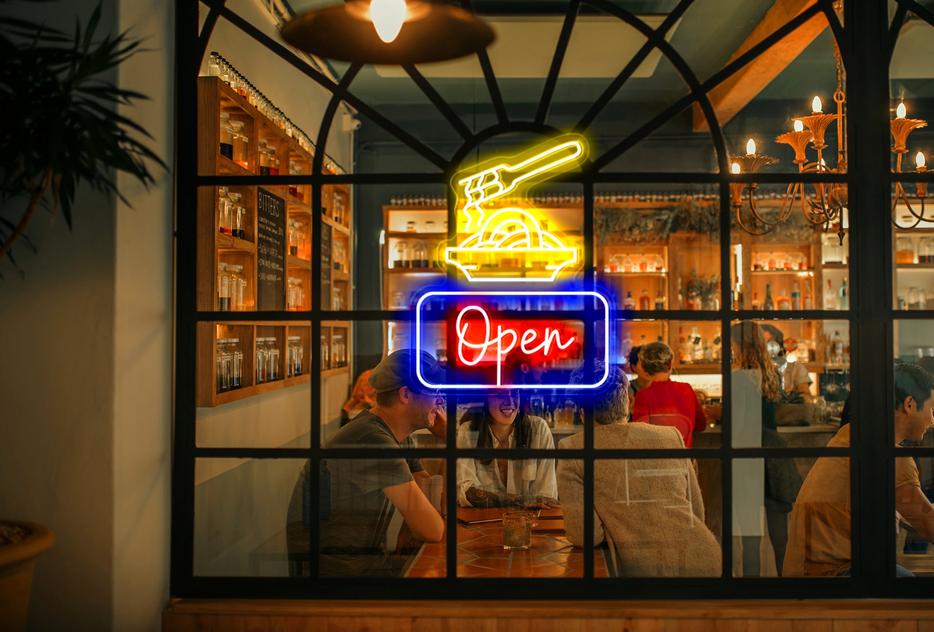 Spice up your restaurant's entrance with our mouthwatering 'Open LED Neon Sign With Ramen Noodles'. This quirky and appetising sign will surely catch the attention of hungry passersby, inviting them to indulge in a delicious bowl of steaming ramen.