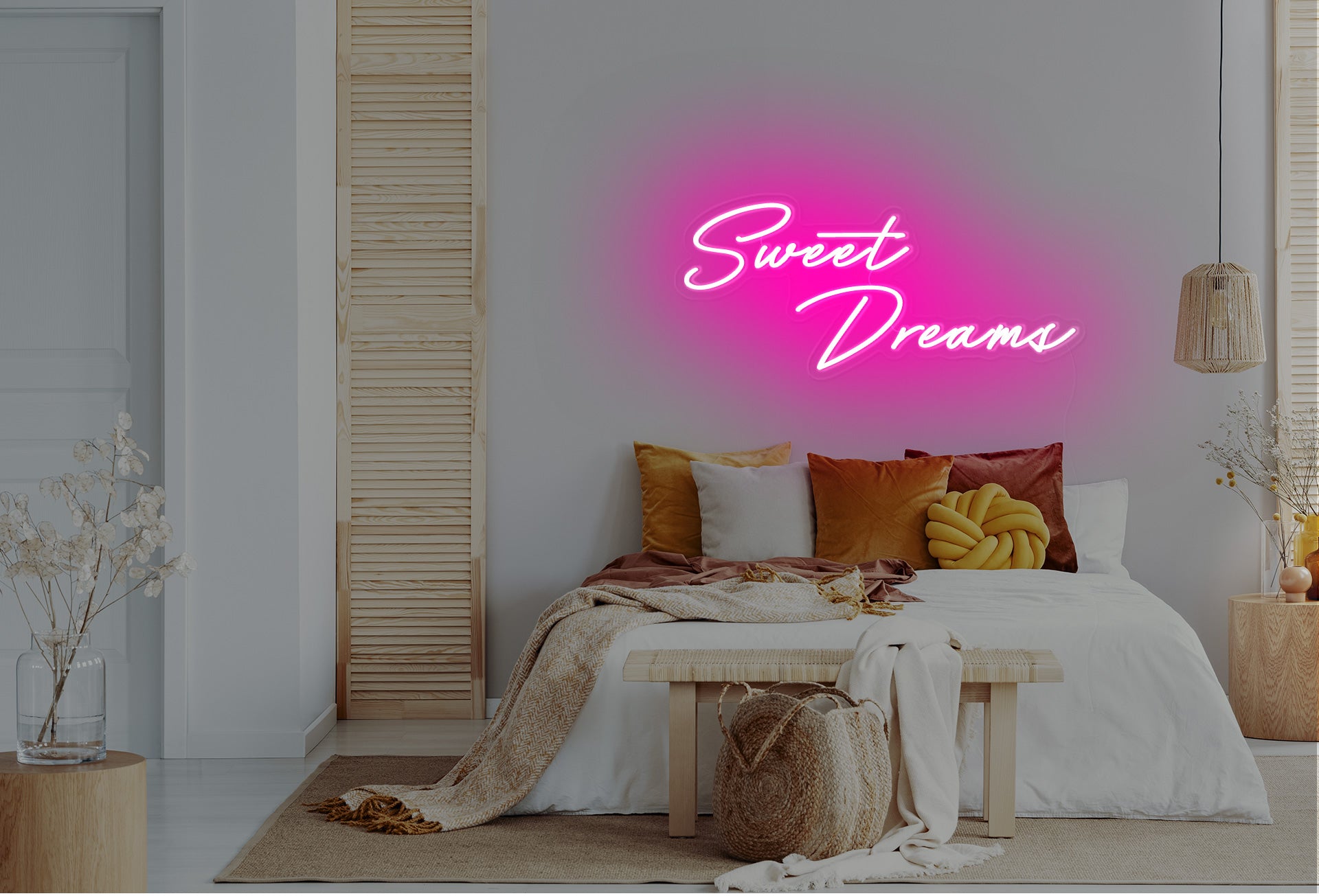Transform your space into a dreamy oasis with our custom Sweet Dreams neon sign. Let your imagination run wild with our unique home decor piece, available in multiple colors. Handmade with durable materials and safe LED lights, it also makes the perfect gift idea.