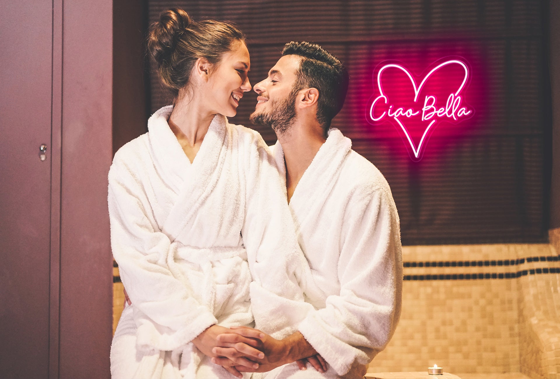 Add a touch of charming romance to any room with the Ciao Bella Neon Sign. This custom LED sign is handmade with safe and durable materials, making it perfect for bedroom, home, or kid's decor. Choose your own text and favorite colours for a sweet and affordable gift that will surely make anyone smile.
