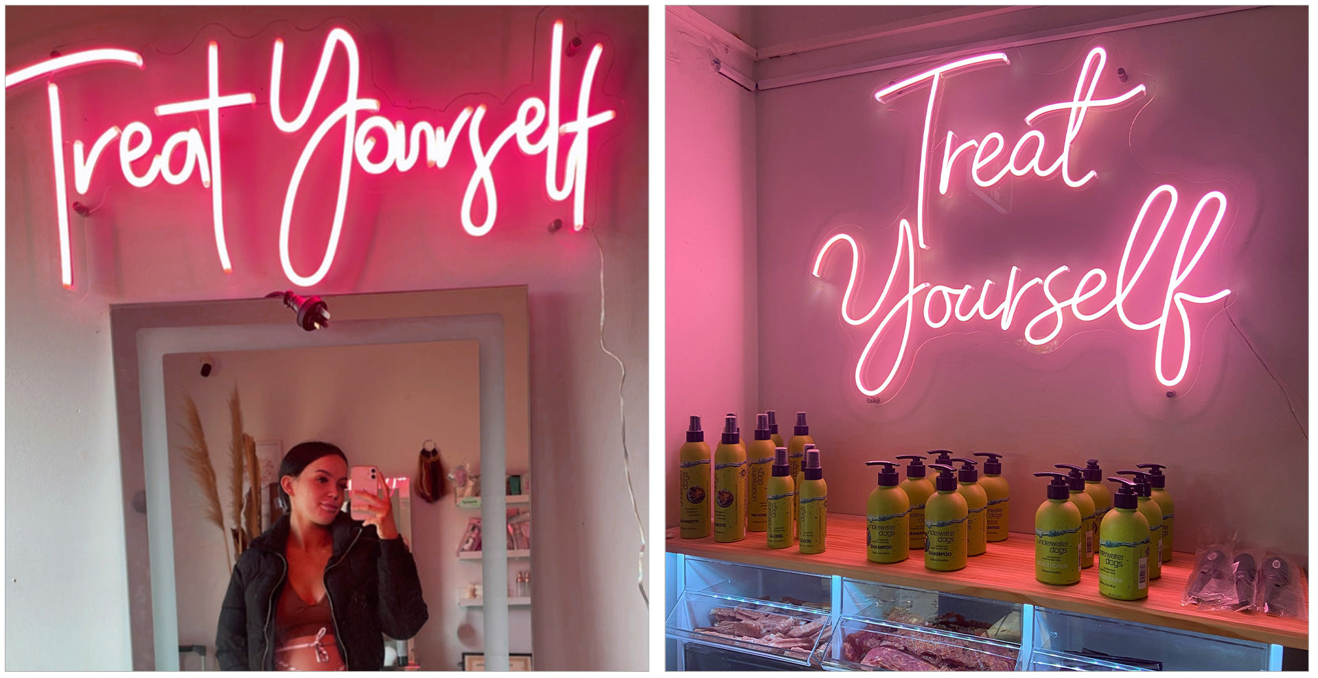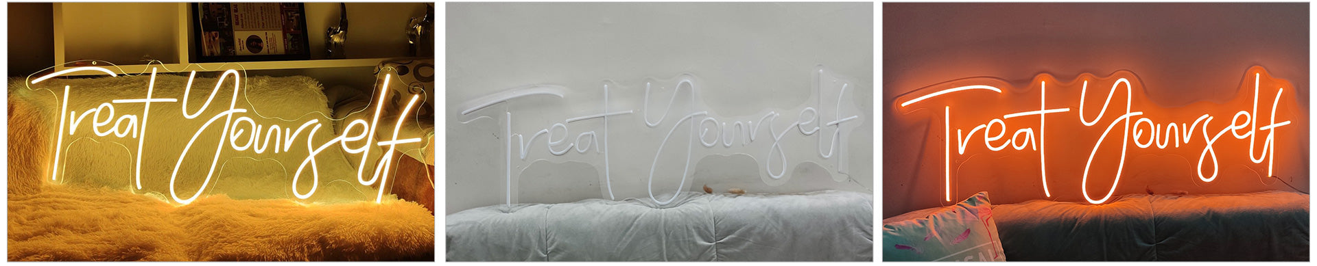 Everyone deserves to have a little break from the everyday stressors of life so the 'Treat Yourself' neon sign is the perfect reminder of that. Whether it is displayed in a cafe, boutique or as a stunning piece of home decor, this neon sign is sure to create a relaxed atmosphere.