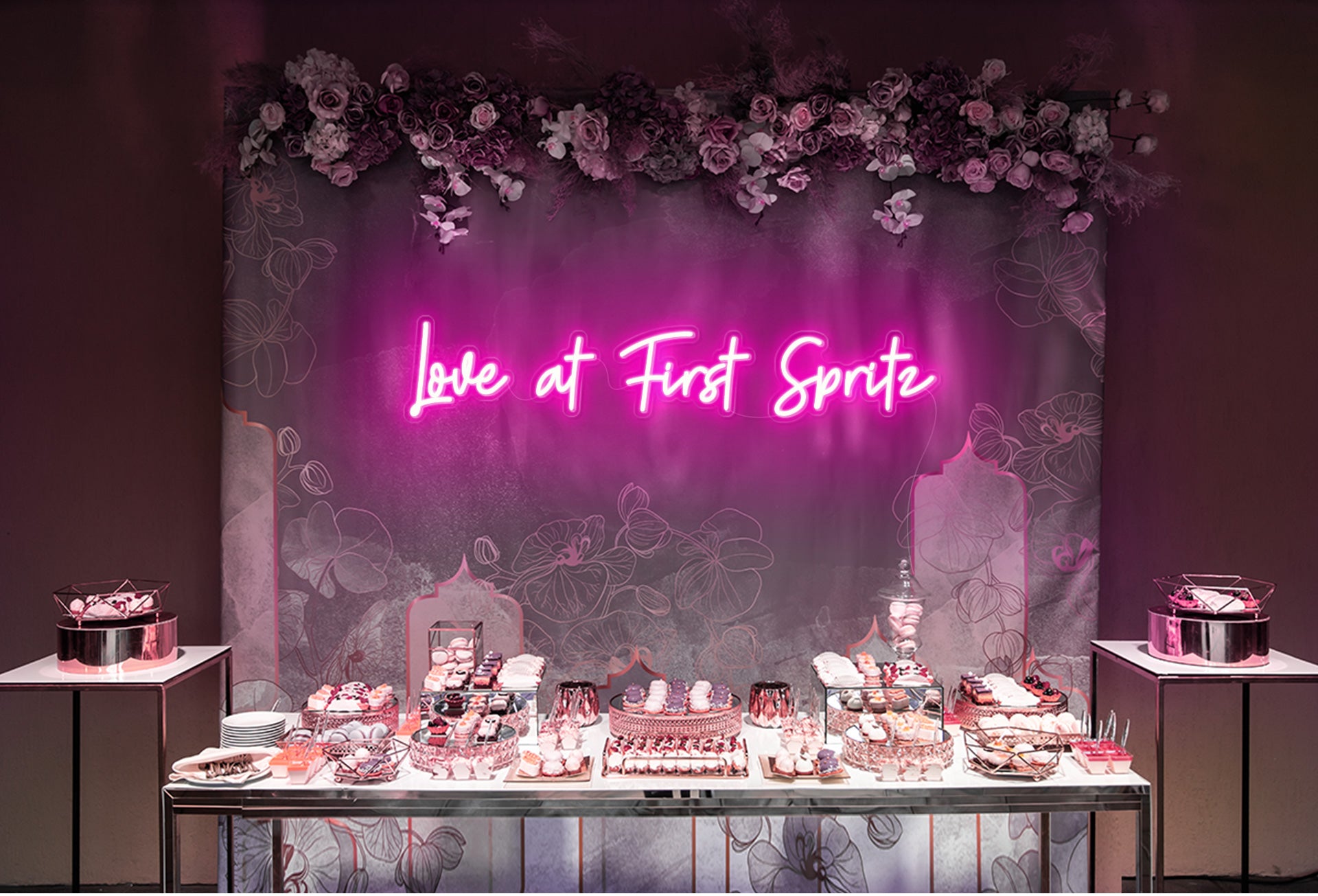 Make your wedding unforgettable with the 'Love at First Spritz' neon sign. There's no better way to invite people to join you in a night of fun and joy that with this sign. Of course, it's not just for weddings, this sign can elevate the style in any space.