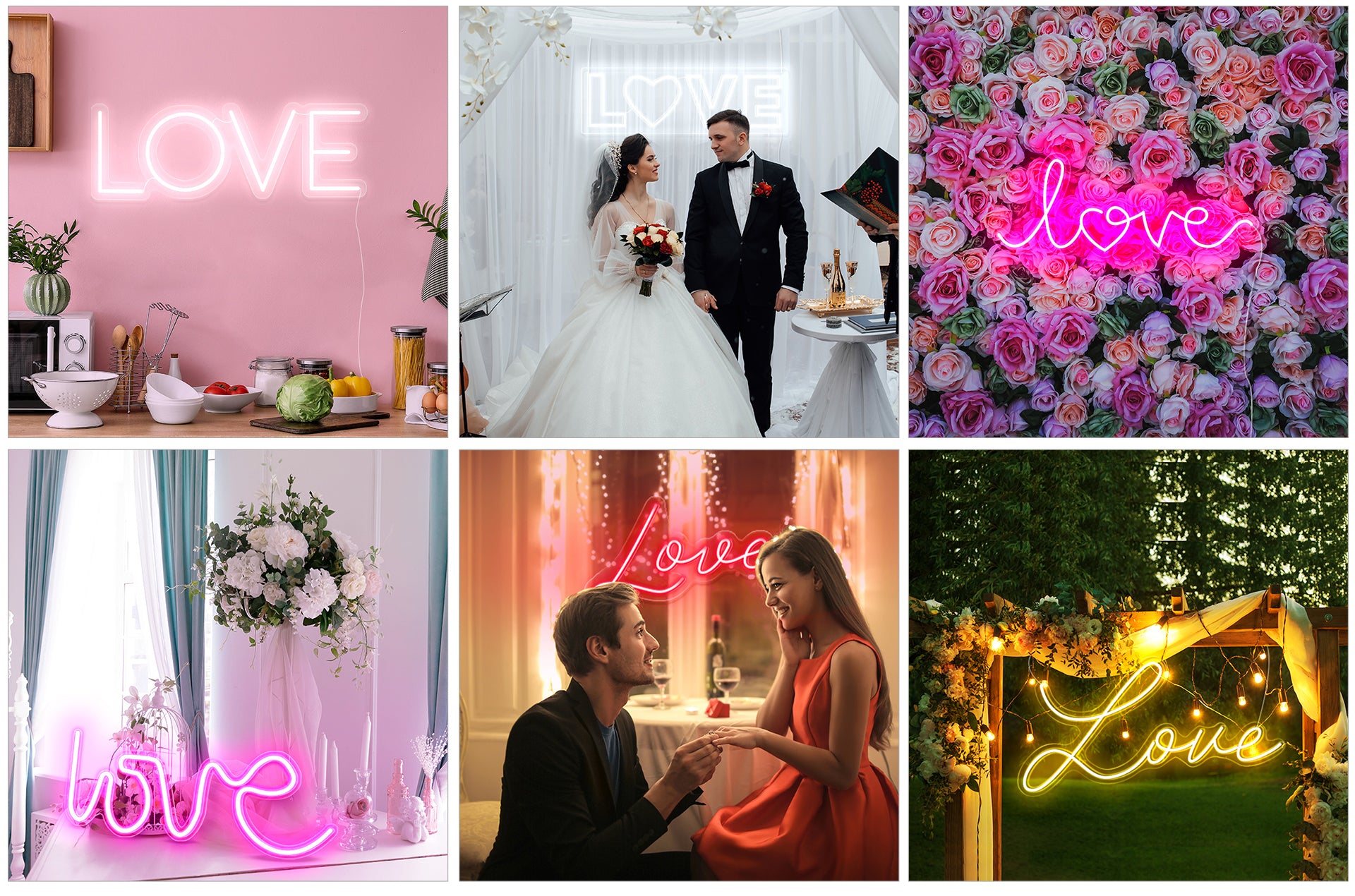 Let your love shine bright with our beautiful, thoughtful Love neon wall art. Perfect as wedding decor or a sweet Valentine's Day gift, express your love with this unique, custom piece available in many colour options. Handmade with safety in mind, it's a one-of-a-kind addition to any space.