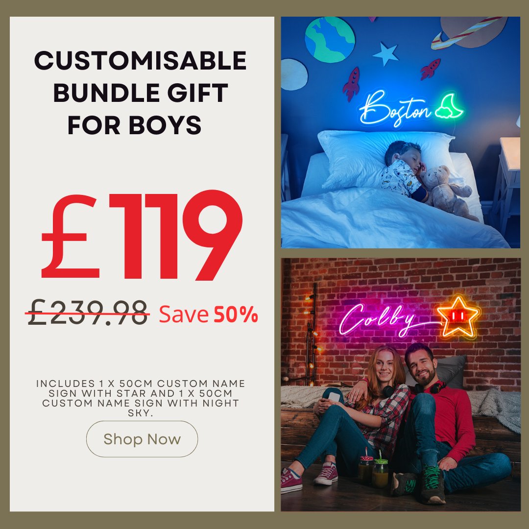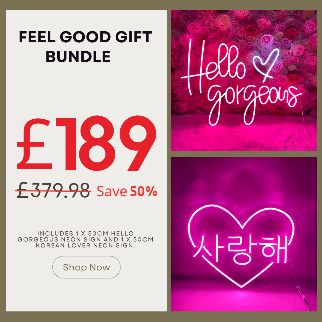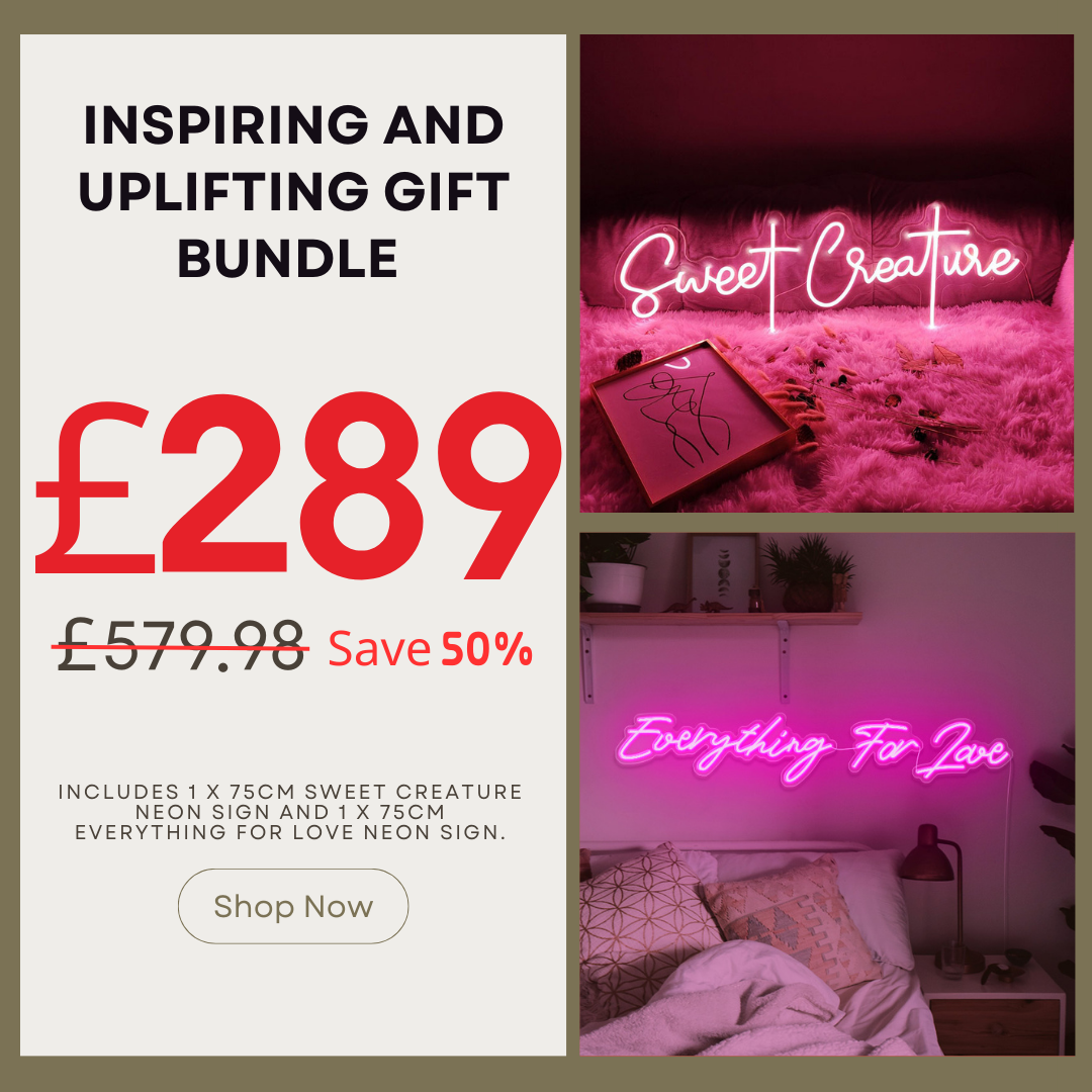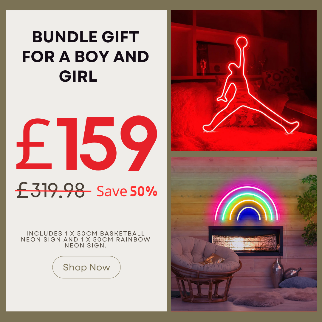 Looking to impress everyone on your Christmas list? Look no further! Our carefully crafted neon gift bundles are the perfect solution for easy holiday shopping. With options tailored for all ages and interests, our bundles offer exceptional value with TWO neon signs for the price of one.