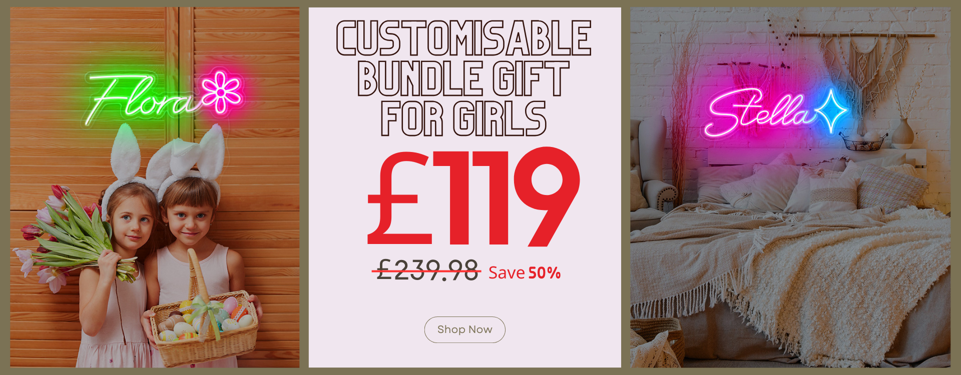 Introducing our Customisable Bundle Gift for Girls, specially curated for families with two beloved daughters! This exquisite set features two personalised 50cm name signs, each with its own distinct design. One sign showcases a delightful flower motif, adding a touch of charm and grace, while the other mesmerises with a dazzling diamond pattern.